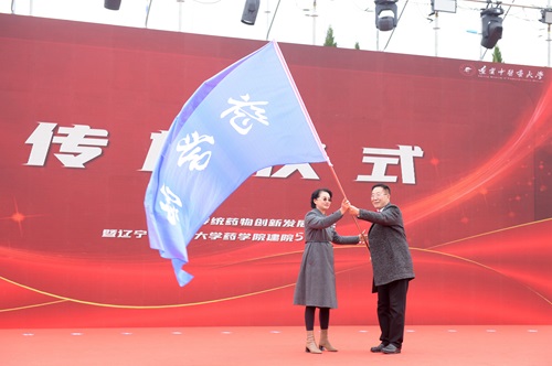 會上,舉行了藥學(xué)院院旗傳旗儀式,呂曉東為藥學(xué)院1977級校友康廷國授院旗。隨后,1977級校友王崢濤、1978級校友門啟鳴、1980級校友謝明、1981級校友趙光燃、1984級校友孟憲生、1986級校友王景剛、1991級校友才謙、1993級校友孫立夫、2008級校友顏鑫、藥學(xué)院現(xiàn)任院長竇德強進行了院旗傳遞。