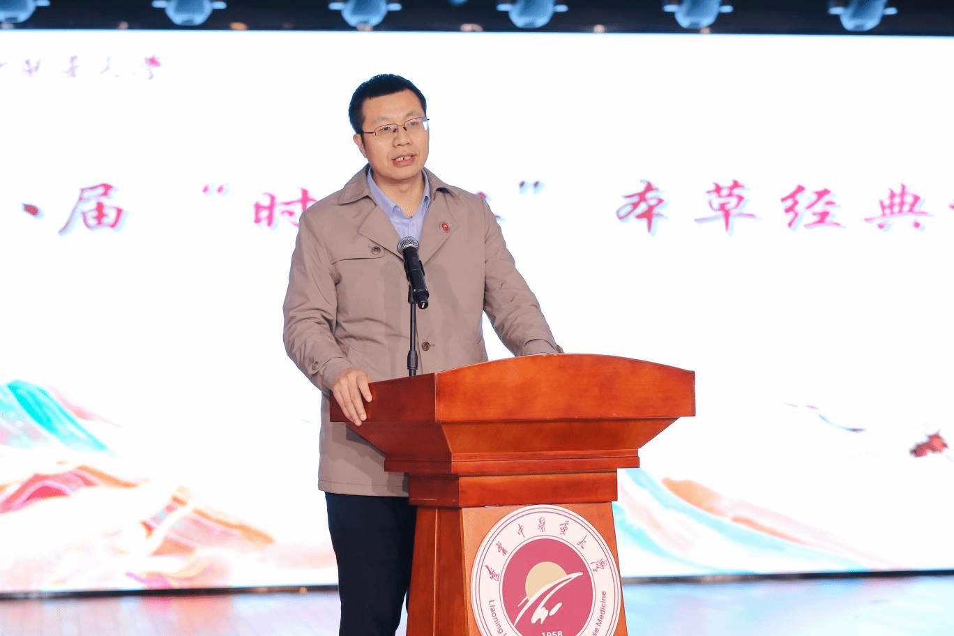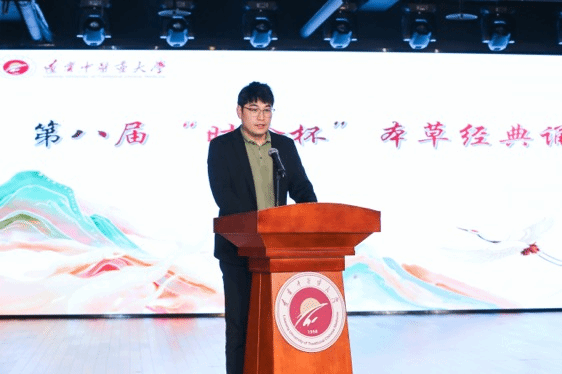 許海玉致辭,他指出,大賽歷經(jīng)多年發(fā)展,已成為藥學(xué)院傳承中醫(yī)藥文化的重要載體,賽事是學(xué)校落實(shí)立德樹人根本任務(wù)、推動(dòng)中醫(yī)藥文化傳承創(chuàng)新發(fā)展的重要實(shí)踐,展現(xiàn)了學(xué)校對(duì)弘揚(yáng)中醫(yī)藥文化、培養(yǎng)高素質(zhì)人才的高度重視。