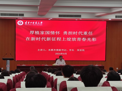 9月12日,本溪市委副書記、市長吳世民走進遼寧中醫(yī)藥大學本溪校區(qū),深入貫徹落實黨中央、省委關于學校思政課建設的部署要求,圍繞新時代黨和國家事業(yè)取得的偉大成就、本溪全面振興發(fā)展的嶄新局面、新時代青年肩負的責任使命,為師生講授了主題為《厚植家國情懷 勇?lián)鷷r代重任 在新時代新征程上綻放青春光彩》的思政課。本溪市政協(xié)黨組成員、市教育局黨組書記、局長趙常清,市政府秘書長范大明,市委教育工委專職副書記曹中平,學校黨委副書記劉繼東,本溪校區(qū)管委會校園服務中心領導班子,全體輔導員老師和學生代表260余人參加上述活動,活動由劉繼東主持。
