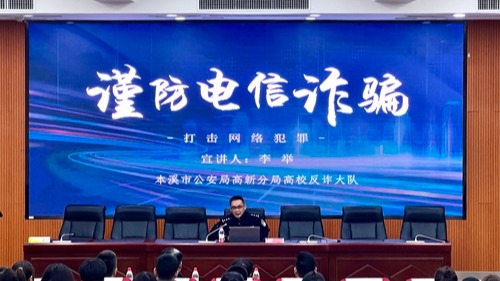 大隊長李舉生動形象地為師生介紹了近年來電信詐騙案件的常見形式、種類、危害、防范措施,以及刷單返利、虛假網(wǎng)絡(luò)貸款、冒充客服詐騙等典型詐騙案例和“幫信罪”警示案例等,呼吁大家要以案為鑒,增強法律意識,保護好個人信息,時刻提高警惕,不斷提升反詐能力。