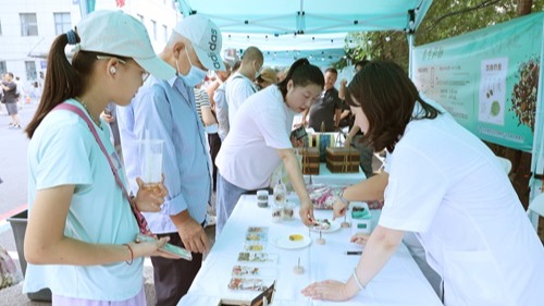 此外,中醫(yī)藥保健食品及文創(chuàng)產(chǎn)品攤位,也吸引了大量市民駐足。清熱生津的烏梅飲,美容養(yǎng)顏的玫瑰甘露,新晉網(wǎng)紅的文創(chuàng)雪糕,草本系列的香囊、調(diào)料、浴足粉,藥膳香薰、養(yǎng)生茶,還有傳統(tǒng)制藥工藝展示,不僅為市民們帶來了新奇的體驗,更在潛移默化中傳播了中醫(yī)藥文化,讓古老的智慧煥發(fā)出新的生機與活力。一位阿姨就對一款中藥調(diào)料包贊不絕口:“吃出來的健康,方便又實用?!?/p>