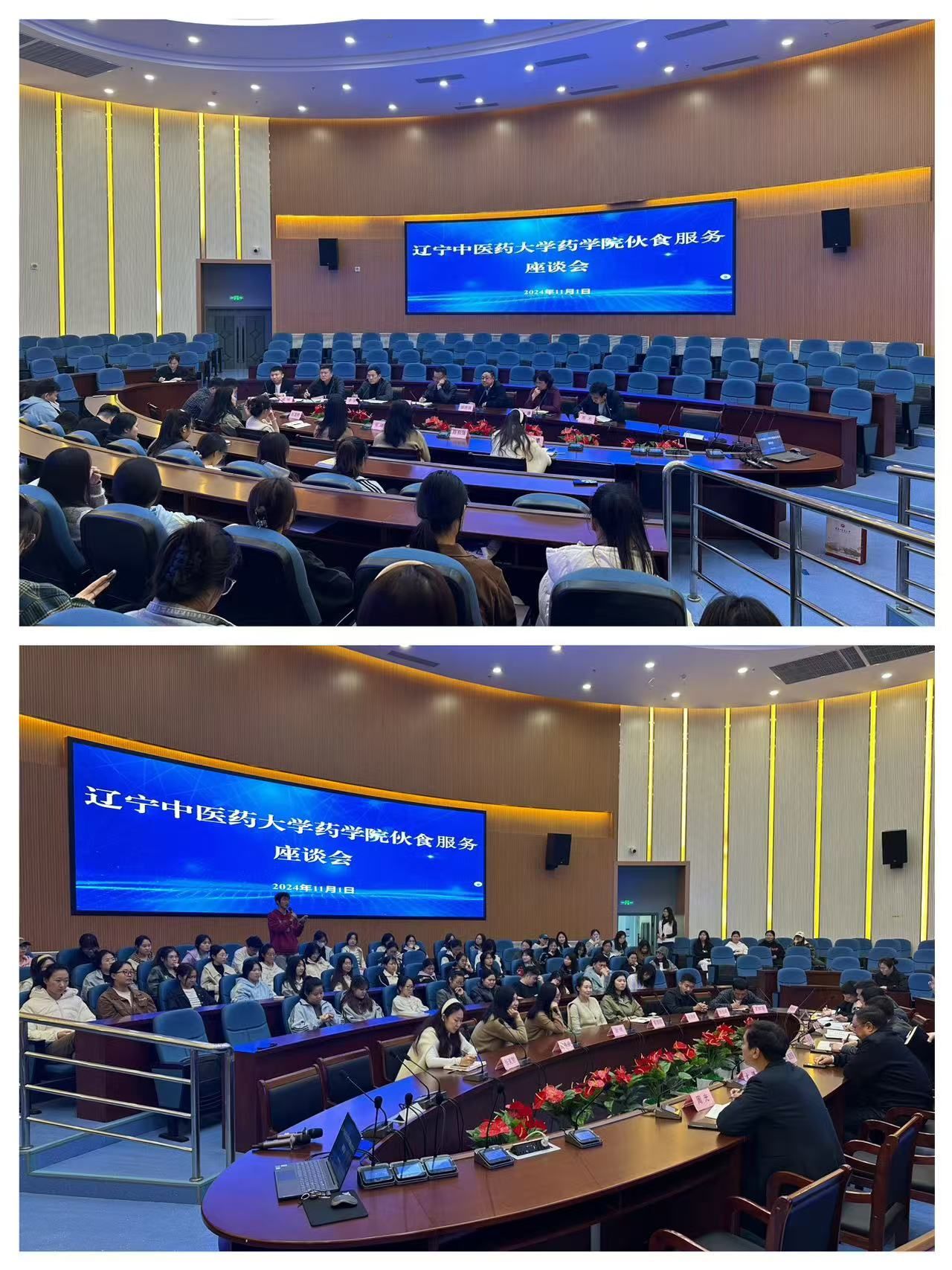 11月1日中午,藥學院舉辦了2024年秋季學期伙食座談會。藥學院院長竇德強,藥學院黨委書記才謙,綜合運行維護中心主任劉洋,藥學院黨委副書記周光,綜合運行維護中心副主任李巖,遼寧藍程物業(yè)服務有限公司副總經理戚悅,遼寧藍程物業(yè)服務有限公司大連食堂項目負責人李鐵牛,食堂管理員,藥學院學生輔導員及50余名學生代表參加了此次會議。會議由李巖主持。