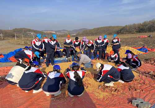 在專業(yè)人員指導(dǎo)下,參加活動的同學(xué)分成三組,第一組同學(xué)主要負(fù)責(zé)玉米脫粒,將機(jī)器未脫粒干凈的玉米繼續(xù)手動脫粒,同時通過專業(yè)人員的講解,了解了玉米成長的周期,如何收割,儲存注意事項以及用途;第二組同學(xué)主要參與畜牧喂養(yǎng)和撿雞蛋,同學(xué)們在老師指導(dǎo)下,對家畜養(yǎng)殖區(qū)的雞、鵝、豬、羊等進(jìn)行喂養(yǎng),在喂養(yǎng)過程中,同學(xué)們掌握了喂養(yǎng)要點和注意事項;第三組同學(xué)主要負(fù)責(zé)搬運毛豆,同學(xué)們快速有序地將成堆的毛豆從田間搬到指定位置,通過專業(yè)人員對毛豆生長周期和種植注意事項的講解,同學(xué)們知道了毛豆在不同階段的食用方法。