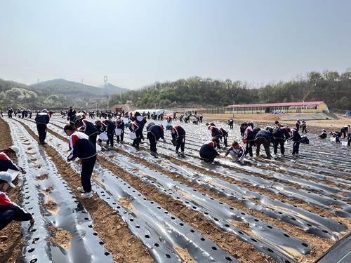 此次勞動教育實(shí)踐活動的主要內(nèi)容是花生種植,專業(yè)人員從花生種植時間、土壤要求、生長習(xí)性等方面進(jìn)行講解,重點(diǎn)講述了種植過程中的注意事項(xiàng);在勞動過程中,同學(xué)們熱情高漲,分工明確,有條不紊完成種植的各個環(huán)節(jié)。兩撥同學(xué)從壟間兩端配合播種,其他同學(xué)將播種好的部分填好沙土。同學(xué)們在實(shí)踐的過程中發(fā)現(xiàn),花生的播種位置、填土的深度都有具體要求,看似簡單的勞動藏著諸多科學(xué)門道。同學(xué)們在田間的勞動實(shí)踐中,掌握了基礎(chǔ)的播種技巧,更體會到“粒粒皆辛苦”的深刻含義。