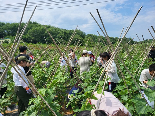 7月上旬,本溪校區(qū)第十四期 “尋耕耘之美 享勞動(dòng)之樂” 勞動(dòng)教育實(shí)踐活動(dòng)火熱開啟,本期活動(dòng)聚焦黃瓜的采摘與分享。活動(dòng)伊始,專業(yè)人員現(xiàn)場(chǎng)向同學(xué)們細(xì)致講解黃瓜成熟度的判斷方法,從色澤鮮潤(rùn)到表皮刺瘤飽滿,從果柄處的鮮嫩狀態(tài)到整體的彎曲弧度,都是挑選成熟黃瓜的關(guān)鍵要素。同時(shí),還傳授了科學(xué)的采摘技巧,強(qiáng)調(diào)要輕捏果柄,斜向掐斷,避免損傷藤蔓。