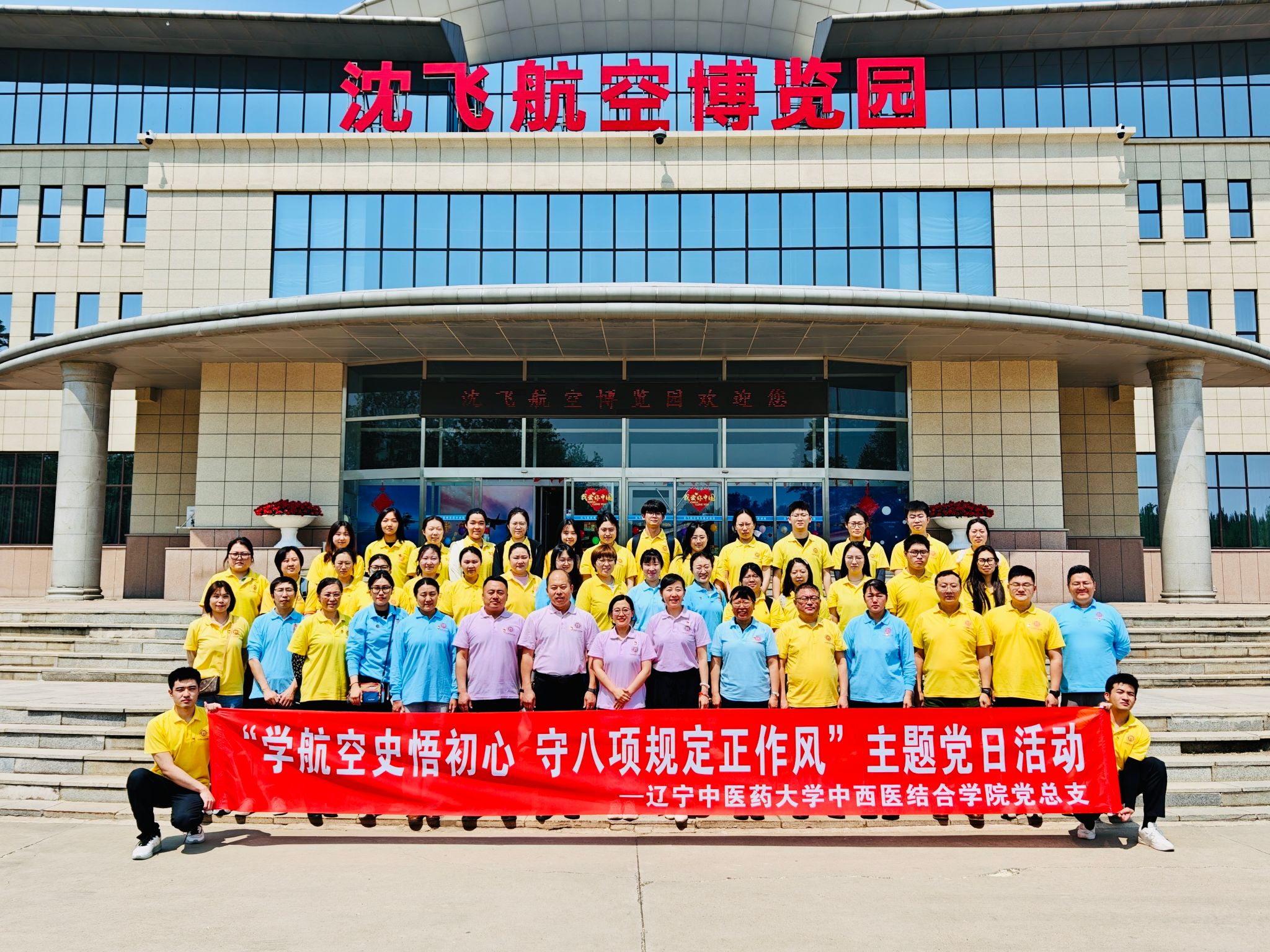 5月28日下午,中西醫(yī)結(jié)合學(xué)院黨總支開展“學(xué)航空史悟初心 守八項(xiàng)規(guī)定正作風(fēng)”主題黨日活動(dòng),學(xué)院黨總支書記張丹、副院長(zhǎng)劉慧慧、黨總支副書記馮丹楓、副院長(zhǎng)崔長(zhǎng)樂(lè)及師生黨員共50余人赴沈飛航空博覽園進(jìn)行實(shí)踐學(xué)習(xí)。