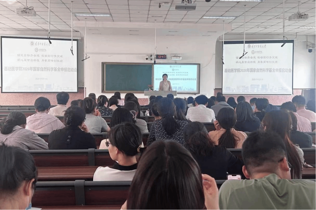 9月11日,基礎(chǔ)醫(yī)學院2026年國家自然科學基金項目申報啟動會暨國家自然科學基金項目申報思路匯報會在華佗樓召開。學院院長戰(zhàn)麗彬、副院長鄧洋洋、副院長陳智慧、指導專家、教研室主任、教研室秘書、全院無課教師以及科研辦公室工作人員參加會議。