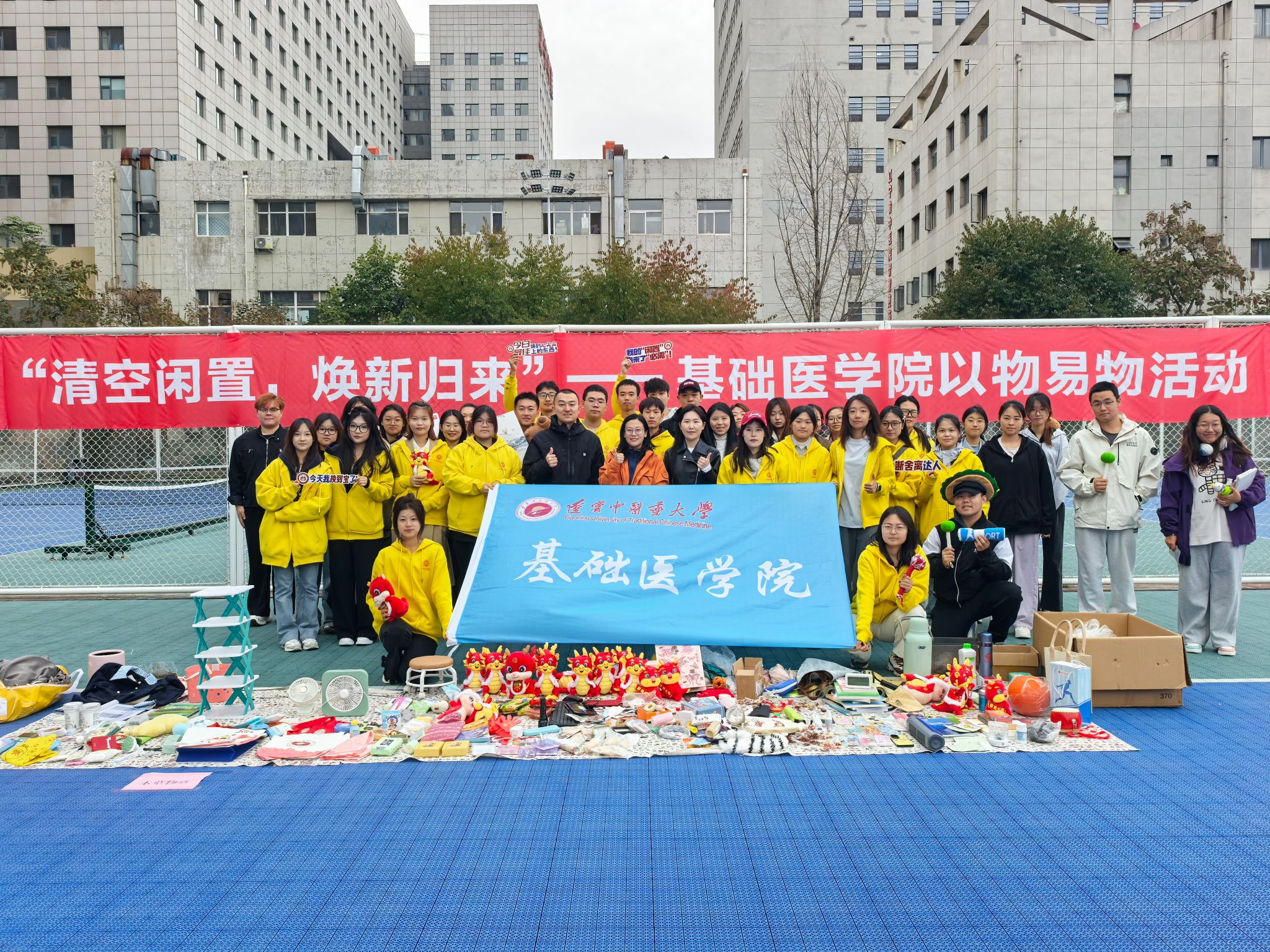 為幫助同學(xué)們解決寢室閑置物品堆積問題,提升寢室衛(wèi)生、打造舒適居住環(huán)境,同時(shí)搭建同學(xué)間交流互動(dòng)的平臺(tái),10月12日,基礎(chǔ)醫(yī)學(xué)院在西院網(wǎng)球場(chǎng)舉辦“清空閑置 煥新歸來”以物易物活動(dòng),全院同學(xué)積極響應(yīng)、熱情參與。