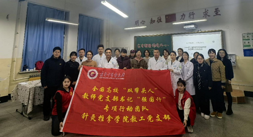 11月21日,針灸推拿學(xué)院教工黨支部與青鴻針研社黨員突擊隊(duì)聯(lián)合遼寧省實(shí)驗(yàn)中學(xué)初中部,舉辦了一場(chǎng)以“愛(ài)心義診進(jìn)校園,中醫(yī)關(guān)懷暖人心”為主題的中醫(yī)養(yǎng)生文化活動(dòng)。學(xué)院教工黨支部書(shū)記王樹(shù)東,黨員田輝、李記泉、金穎,研究生黨支部書(shū)記金毅軒和部分研究生黨員參與活動(dòng)。