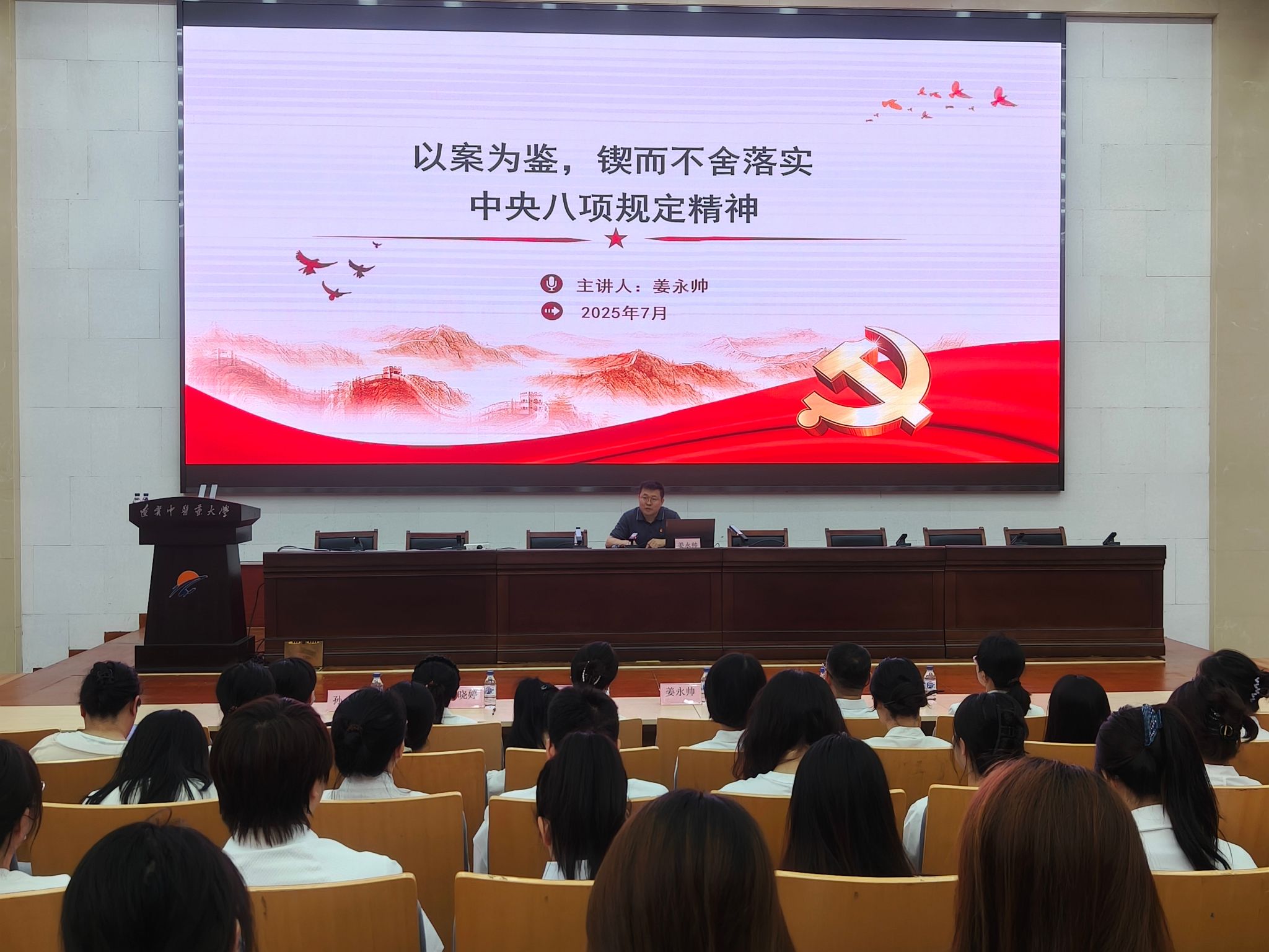 7月17日,護(hù)理學(xué)院黨總支黨校開(kāi)展警示教育黨課暨2025年第1期培訓(xùn)班結(jié)業(yè)儀式。學(xué)院黨總支書(shū)記、黨總支黨校校長(zhǎng)范艷主持活動(dòng),護(hù)理學(xué)院領(lǐng)導(dǎo)班子、全體師生黨員參會(huì)。