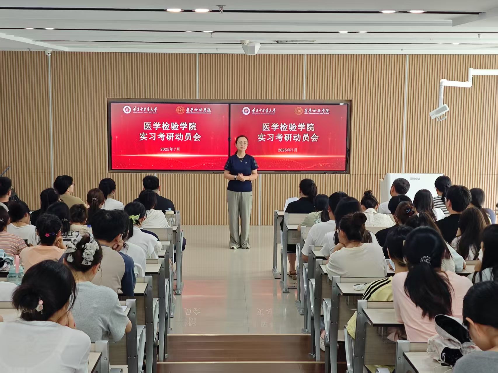 為幫助學生明晰實習與考研規(guī)劃,激發(fā)學習熱情,7月15日,醫(yī)學檢驗學院在S911階梯教室召開實習考研動員會。學院領導班子,專業(yè)教師代表,輔導員及即將步入實習的全體2026屆學生參會,會議由黨總支書記李巍主持。