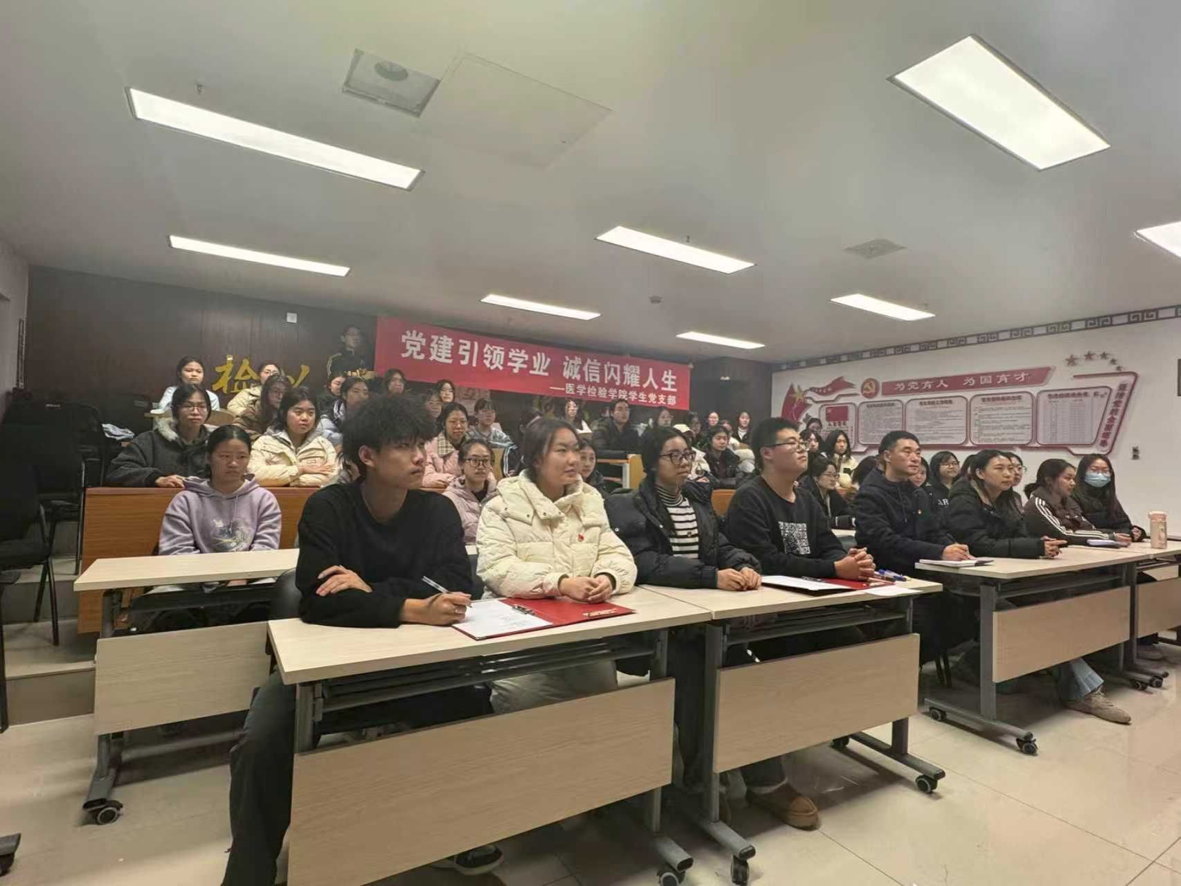 近日,醫(yī)學(xué)檢驗(yàn)學(xué)院學(xué)生黨支部以主題黨日為載體,開展“黨建引領(lǐng)學(xué)業(yè),誠信閃耀人生”系列活動(dòng),學(xué)院黨總支副書記左帥,輔導(dǎo)員趙宇,全體學(xué)生黨員、入黨積極分子及學(xué)生代表共同參與。