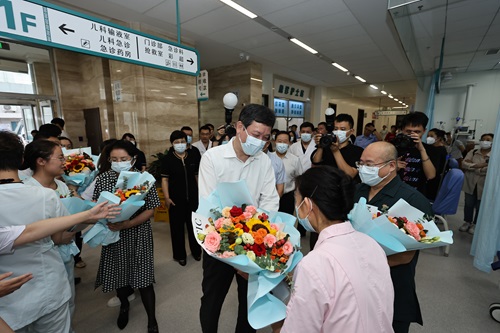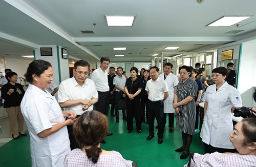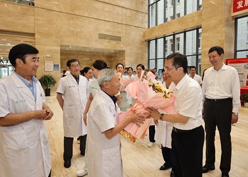調(diào)研組深入臨床科室了解情況聽取意見,并向醫(yī)務(wù)工作者們致以節(jié)日問候和美好祝愿,對國醫(yī)大師張靜生,全國名中醫(yī)田維柱、楊積武和田振國進行了慰問。黃璐琦強調(diào),廣大醫(yī)務(wù)工作者要堅持以習近平新時代中國特色社會主義思想為指導,弘揚“敬佑生命、救死扶傷、甘于奉獻、大愛無疆”的職業(yè)精神,勤練技能、苦修仁術(shù),自覺做“大醫(yī)精誠”的踐行者、傳承者、弘揚者。