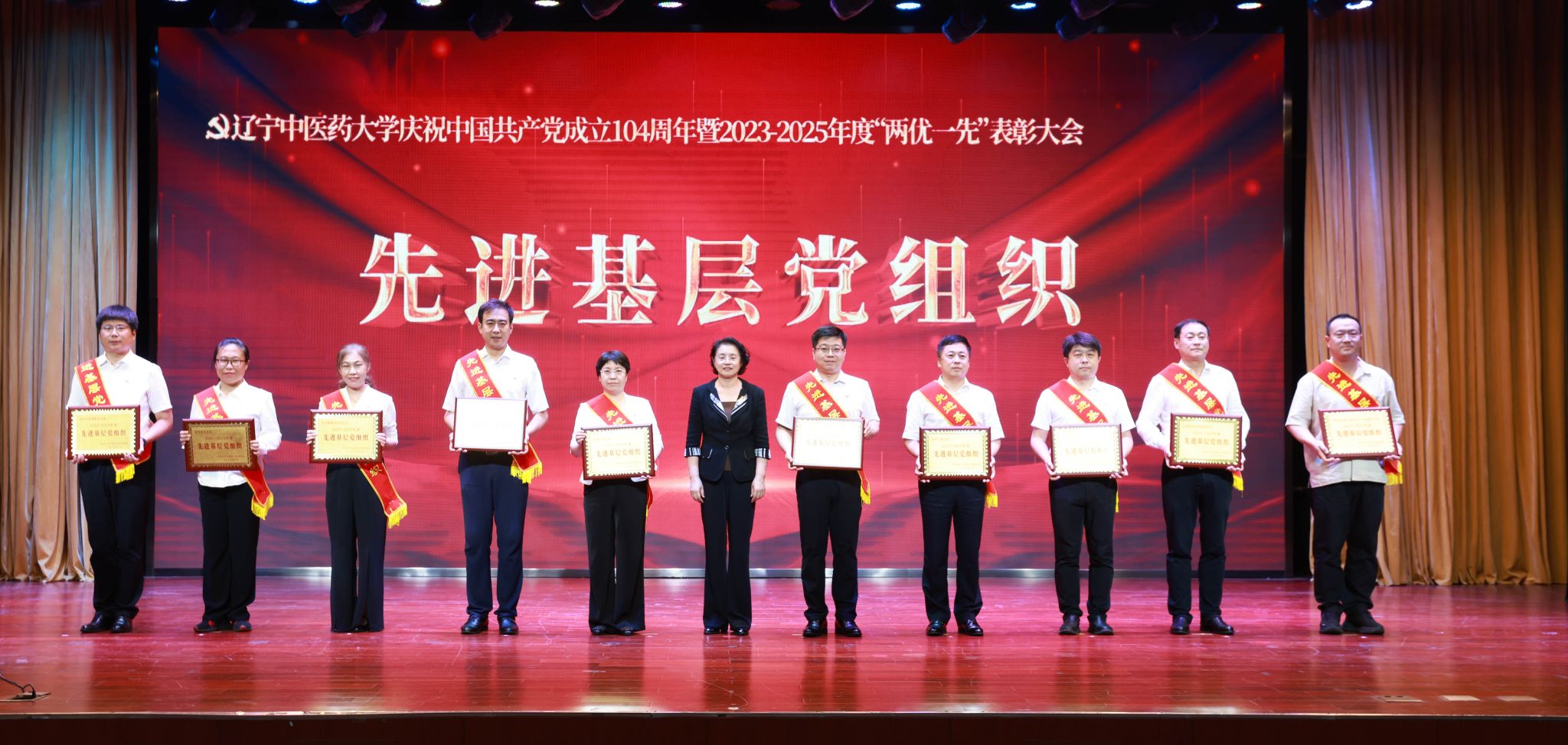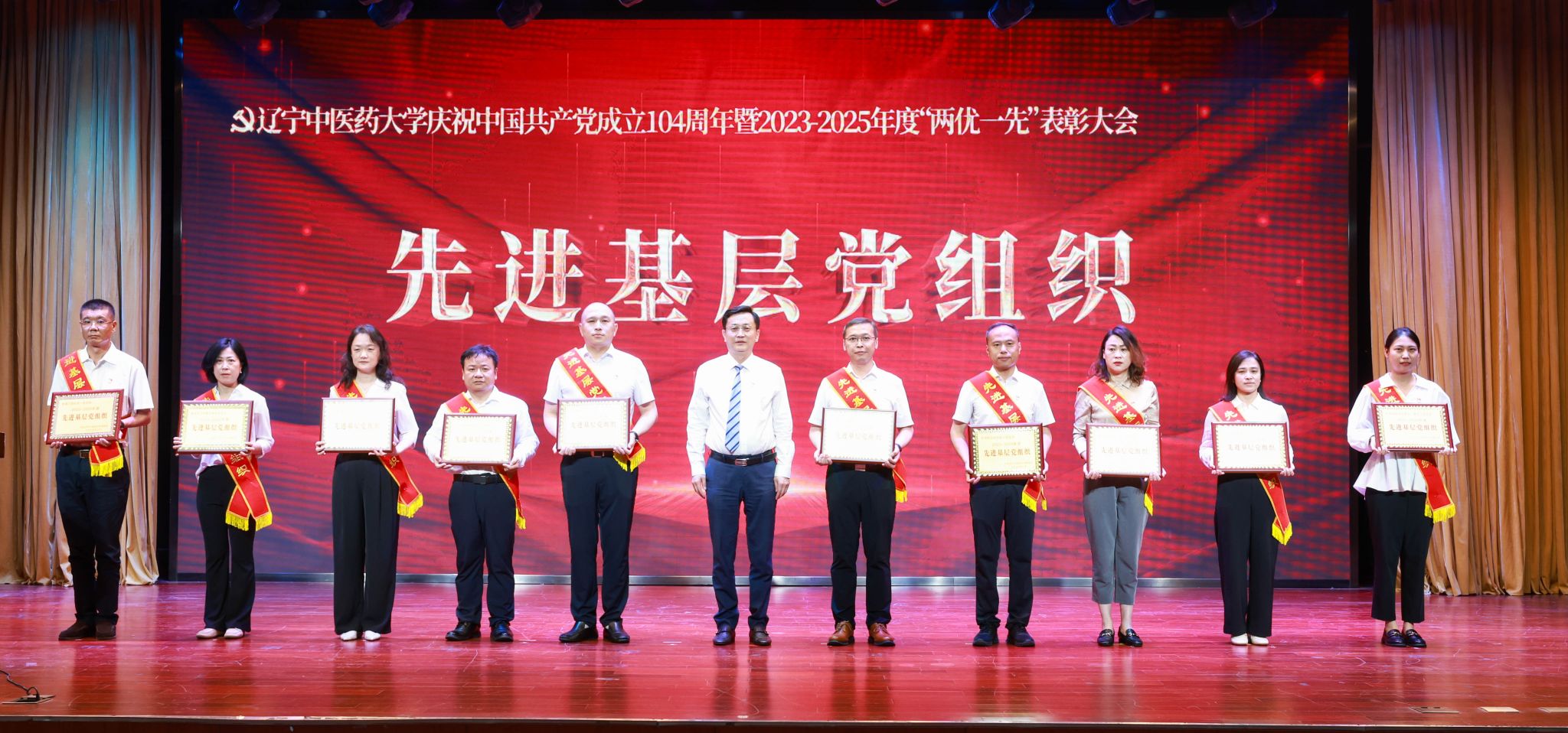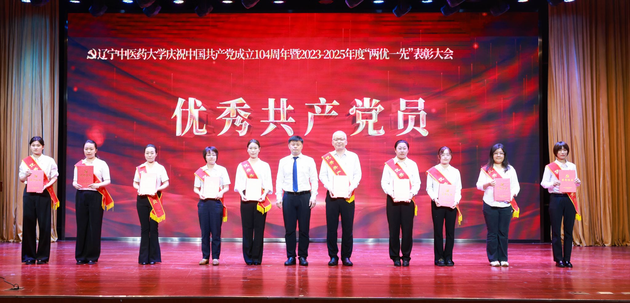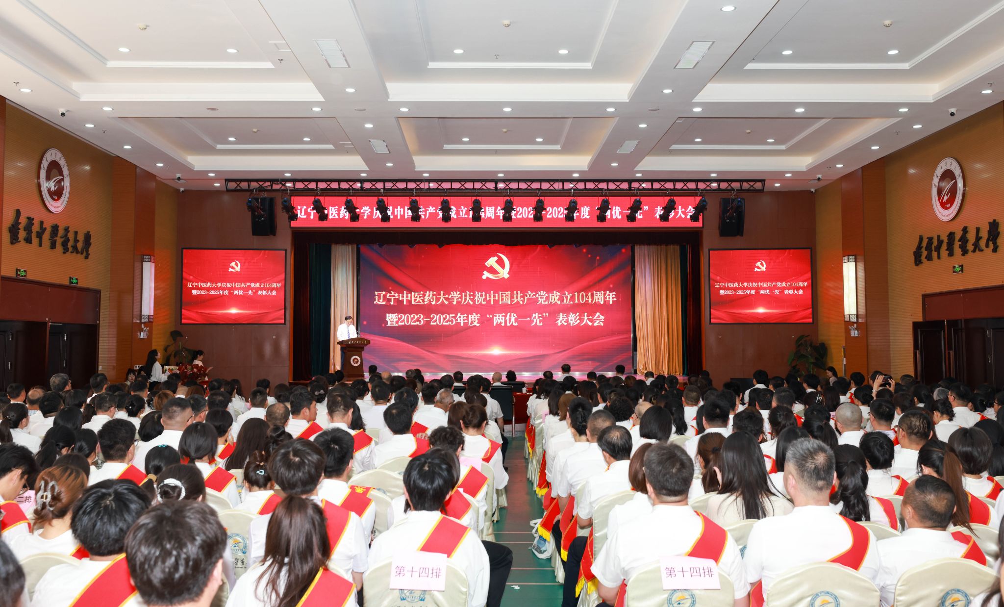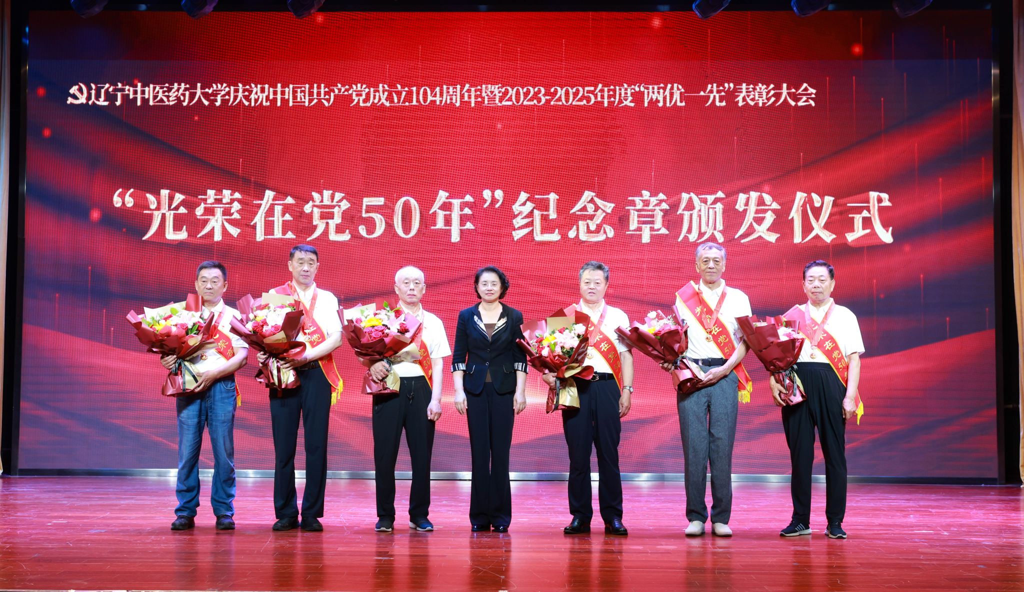 6月30日,學(xué)校隆重召開慶祝中國共產(chǎn)黨成立104周年暨2023-2025年度“兩優(yōu)一先”表彰大會(huì),學(xué)校黨委書記呂曉東出席會(huì)議并講話,黨委副書記、校長楊鶇祥,黨委副書記劉繼東,副校長戴旭、袁佺、許海玉出席會(huì)議。受表彰的“兩優(yōu)一先”代表、優(yōu)秀大學(xué)生黨員代表、“光榮在黨50年”紀(jì)念章獲得者代表、新黨員代表、全校副處級及以上領(lǐng)導(dǎo)干部、四所附屬醫(yī)院組織部部長以及全校專兼職組織員參加大會(huì)。表彰大會(huì)由楊鶇祥主持。