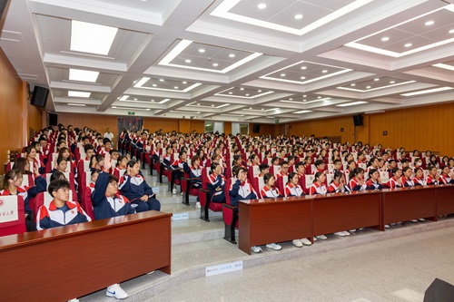 學(xué)校相關(guān)部門負(fù)責(zé)人、新生輔導(dǎo)員、2024級(jí)本科新生代表在本溪校區(qū)報(bào)告廳共同聆聽“開學(xué)第一課”。
