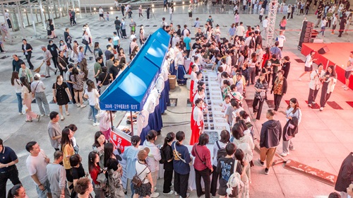 作為本次活動(dòng)的重頭戲,“資深中醫(yī)專(zhuān)家膏方咨詢”與“現(xiàn)場(chǎng)膏方制作演示”主題區(qū)域人頭攢動(dòng),名醫(yī)大家現(xiàn)場(chǎng)講解膏方的淵源、功效特點(diǎn)、適用對(duì)象、服用季節(jié)、服用方法、存放方法、服用禁忌等,并現(xiàn)場(chǎng)展示膏方制作工藝,前來(lái)逛夜市的市民大開(kāi)眼界。名中醫(yī)專(zhuān)家義診,中醫(yī)藥傳統(tǒng)療法與特色療法體驗(yàn),養(yǎng)生功法、養(yǎng)生健身操、兒童韻律操演示,青少年中醫(yī)藥文化體驗(yàn),中藥材古法炮制展示及互動(dòng)體驗(yàn),藥膳、藥茶及相關(guān)衍生產(chǎn)品品鑒,中醫(yī)藥文創(chuàng)產(chǎn)品展示,中醫(yī)藥學(xué)習(xí)輔導(dǎo)咨詢及急診急救演示等主題“攤位”,化身為一個(gè)個(gè)冒著熱乎氣兒的沉浸式中醫(yī)藥文化體驗(yàn)新場(chǎng)景。前來(lái)參加夜市活動(dòng)的市民中不少人是“回頭客”,吃喝玩樂(lè)、健康養(yǎng)生一站式體驗(yàn),“老粉絲”直呼過(guò)癮。
