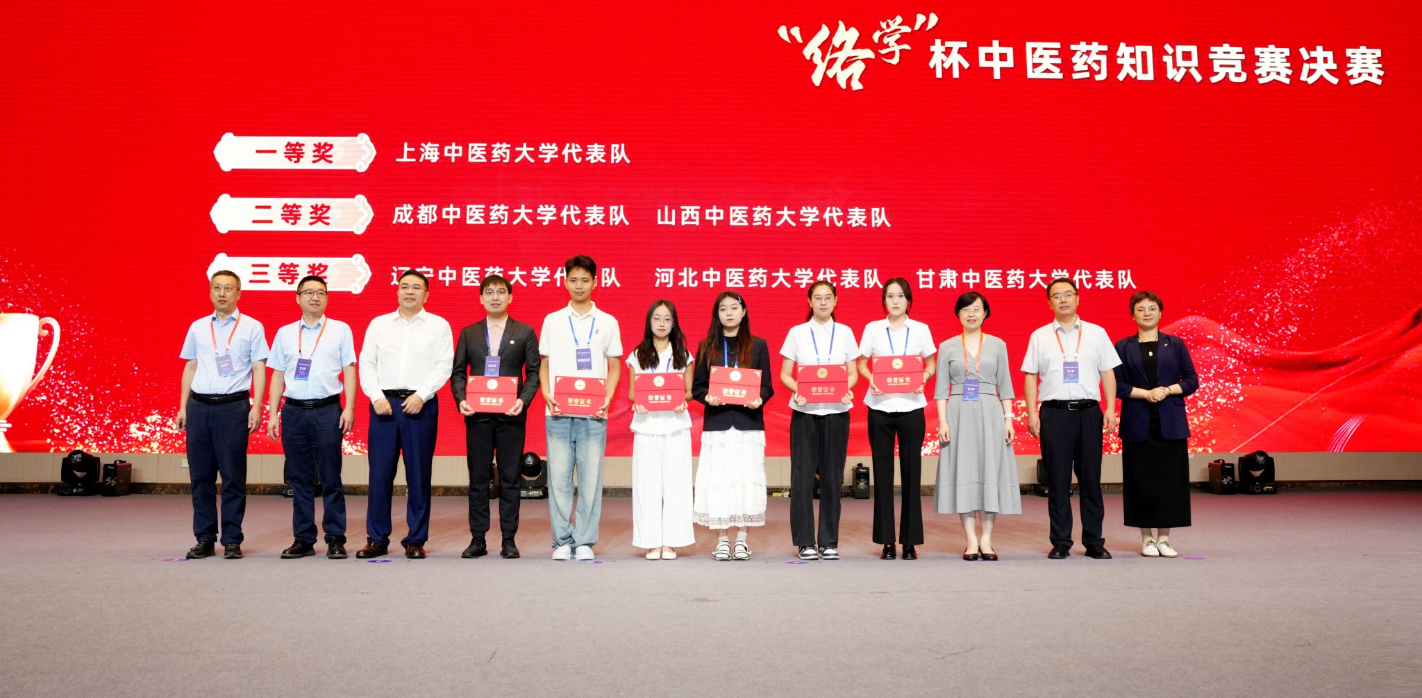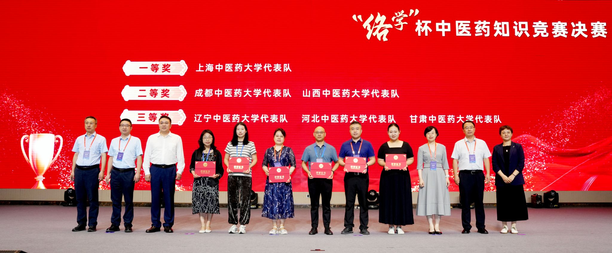 遼寧中醫(yī)藥大學(xué)代表隊(duì)獲最佳表現(xiàn)獎(jiǎng) 教師戴儉宇(右五)上臺(tái)領(lǐng)獎(jiǎng)