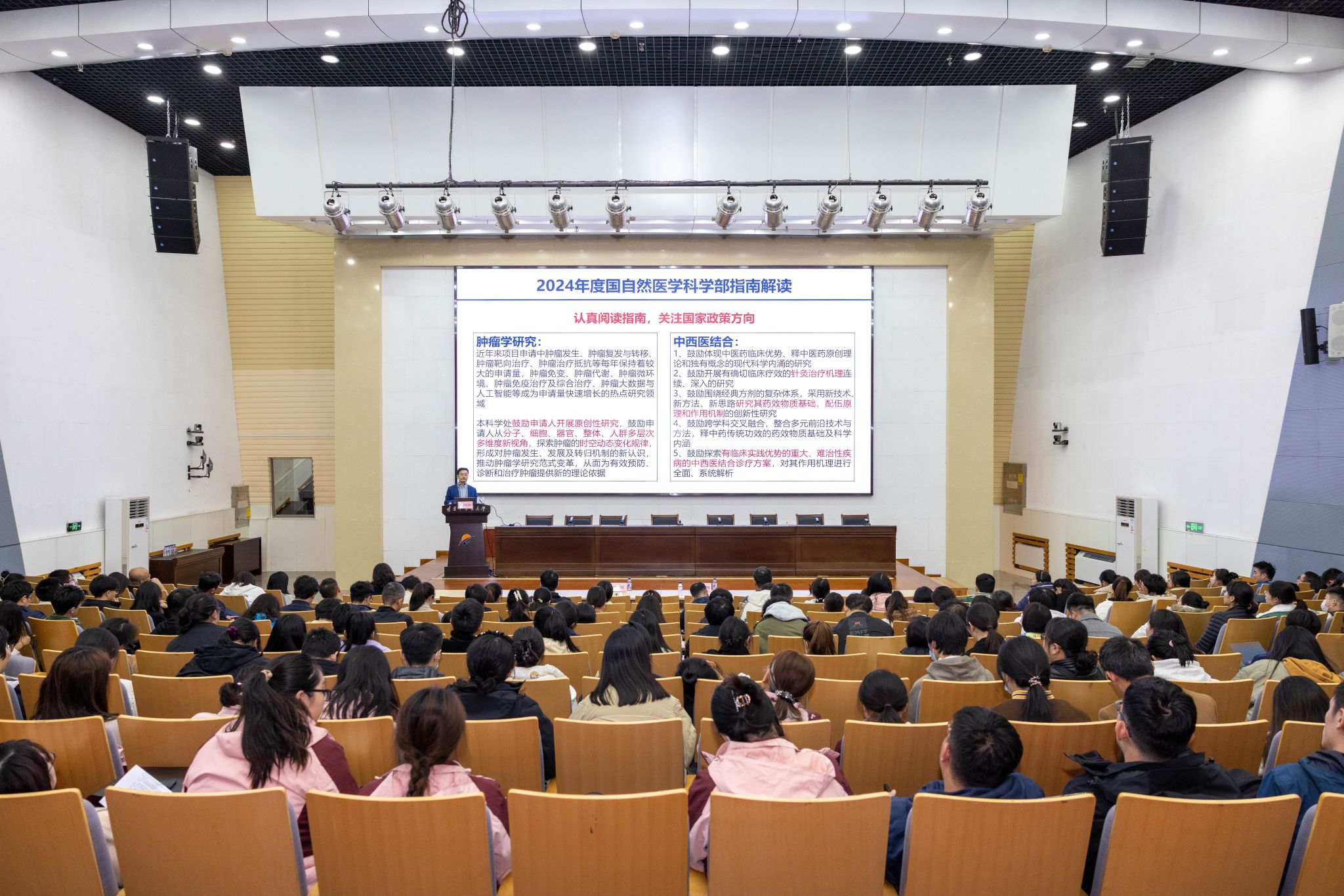 10月23日下午,遼寧中醫(yī)藥大學(xué)百會大講堂第六十五講暨2025年國家自然科學(xué)基金培訓(xùn)第一講在學(xué)術(shù)報告廳舉行。學(xué)校特邀國家臨床重點??颇[瘤學(xué)建設(shè)單位負(fù)責(zé)人、國家中成藥工程技術(shù)研究中心-遼寧省醫(yī)學(xué)分中心負(fù)責(zé)人、中國醫(yī)科大學(xué)附屬盛京醫(yī)院副院長劉彩剛教授出席本次百會大講堂作專題講座。學(xué)校副校長戴旭出席報告會,會議由科技處處長于睿主持。