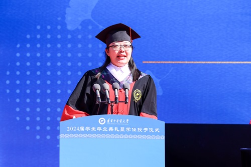 呂曉東為獲得學士學位的畢業(yè)生代表頒發(fā)學位證書,授予學位。