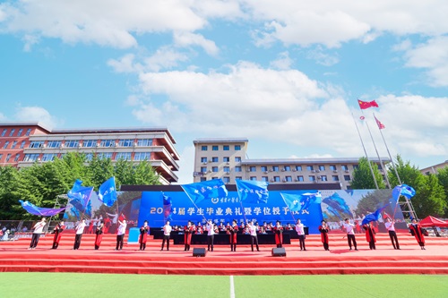 畢業(yè)典禮前,現(xiàn)場播放了2024屆畢業(yè)生對母校的祝福視頻,抒發(fā)了全體畢業(yè)生對母校的依依惜別之情和對未來的期許。暖場表演精彩紛呈,現(xiàn)場氣氛熱烈?!段覑勰阒袊贰峨x別開出花》《燭光里的媽媽》《真心英雄》《光陰的故事》《上春山》......熟悉的旋律激蕩起同學們對大學時光的美好回憶和深厚感情。師生們動感十足的舞蹈、滿懷深情的祝福,贏得現(xiàn)場陣陣掌聲和喝彩。2024屆畢業(yè)生相聚一堂,互道珍重,意氣風發(fā),畢業(yè)典禮在嘹亮的校歌聲中正式開始。