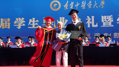 在今年的畢業(yè)典禮上,學校首屆本科畢業(yè)生、耄耋老人張秀妍在畢業(yè)60年之際,從加拿大返回祖國、重回母校,共同為其孫子、國際教育學院本科畢業(yè)生孫煦林撥蘇授位。
