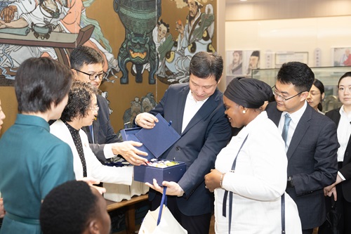 呂曉東代表學(xué)校對(duì)烏干達(dá)高層代表團(tuán)的來訪表示熱烈歡迎,并陪同代表團(tuán)先后參觀了學(xué)校的校史館和醫(yī)史館。在校史館內(nèi),呂曉東向代表團(tuán)詳細(xì)介紹了學(xué)校自創(chuàng)辦以來的發(fā)展歷程和辦學(xué)特色,分享了學(xué)校深厚的文化底蘊(yùn)和取得的各項(xiàng)成果,介紹了自去年學(xué)校派員訪問烏干達(dá)后與烏干達(dá)馬凱雷雷大學(xué)及烏干達(dá)Soota基金會(huì)開展交流并簽署合作備忘錄的情況。