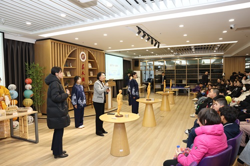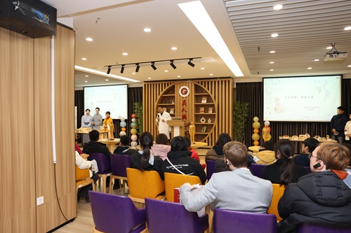 隨后,代表團一行參觀了學(xué)校圖書館,他們在這里欣賞了精彩的五禽戲表演,表演者們精湛的技藝贏得了代表團成員們的陣陣掌聲。