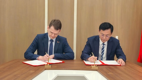 9月19日上午,代表團(tuán)與布列斯特中心城市醫(yī)院院長(zhǎng)莫克洛夫在布列斯特州執(zhí)行委員會(huì)副主席巴岑科、副主席拉法洛維奇的見證下于布列斯特州政府簽署了共同成立中醫(yī)藥國(guó)際合作中心合作協(xié)議。