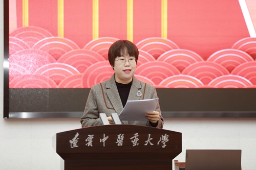 劉繼東宣讀學(xué)校黨委《關(guān)于同意成立遼寧中醫(yī)藥大學(xué)婦女聯(lián)合會的批復(fù)》。
