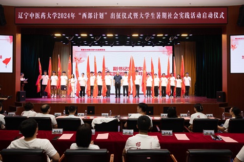 7月15日,遼寧中醫(yī)藥大學(xué)2024年“西部計(jì)劃”出征儀式暨暑期“三下鄉(xiāng)”社會實(shí)踐活動(dòng)啟動(dòng)儀式在大學(xué)生活動(dòng)中心舉行。學(xué)校黨委副書記劉繼東,學(xué)校學(xué)生工作處、招生就業(yè)處、團(tuán)委的負(fù)責(zé)同志,各學(xué)院黨總支書記、副書記、團(tuán)委書記出席儀式,入選“西部計(jì)劃”志愿者和暑期社會實(shí)踐全體成員參加了儀式。本次儀式由校團(tuán)委團(tuán)學(xué)活動(dòng)中心主任肖璇思主持。