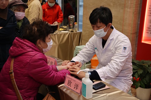 在義診區(qū),醫(yī)院各科室膏方門診專家齊聚一堂,專家們?yōu)榇蠹掖鹨山饣螅M(jìn)行體質(zhì)辨識(shí),免費(fèi)提供專業(yè)的診治方案和實(shí)用的養(yǎng)生建議。