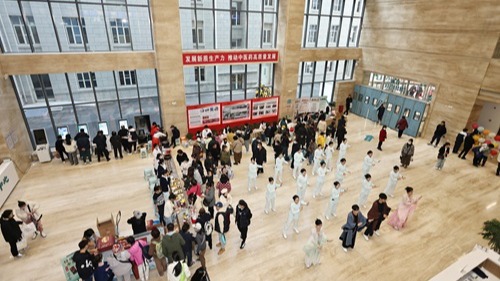 踏入活動(dòng)現(xiàn)場(chǎng),濃郁的中醫(yī)藥文化氛圍撲面而來(lái)。身著傳統(tǒng)漢服的醫(yī)護(hù)人員,將舞蹈與中醫(yī)文化巧妙融合,在歡快的音樂(lè)背景下,演繹精彩的《搖頭擺尾操》。